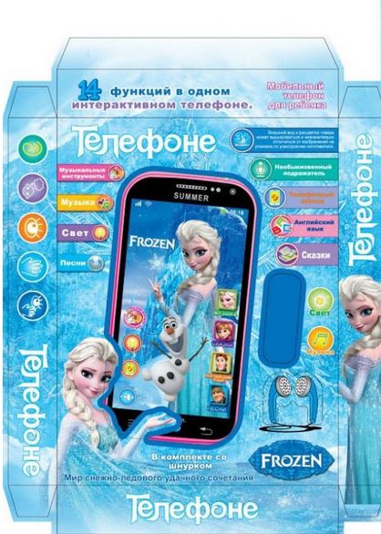 FROZEN-Russian phones. These phones have the LET IT GO song in russian!! Can record the child's voice, has a built in flashlight. Tells stories in russian. Even comes with headphones, which when plugged into the phone allow the child to listen to everything via headphones. Also has an english feature This and so many other fun features. Such a great phone toy for any little frozen fan!! Pink or Blue.